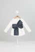 アシンメトリーの立体リボンデザインが遊び心とおしゃれ感をプラスし、中央にはパールボタンをあしらい、冬の雪のように上品な輝きを添えています。